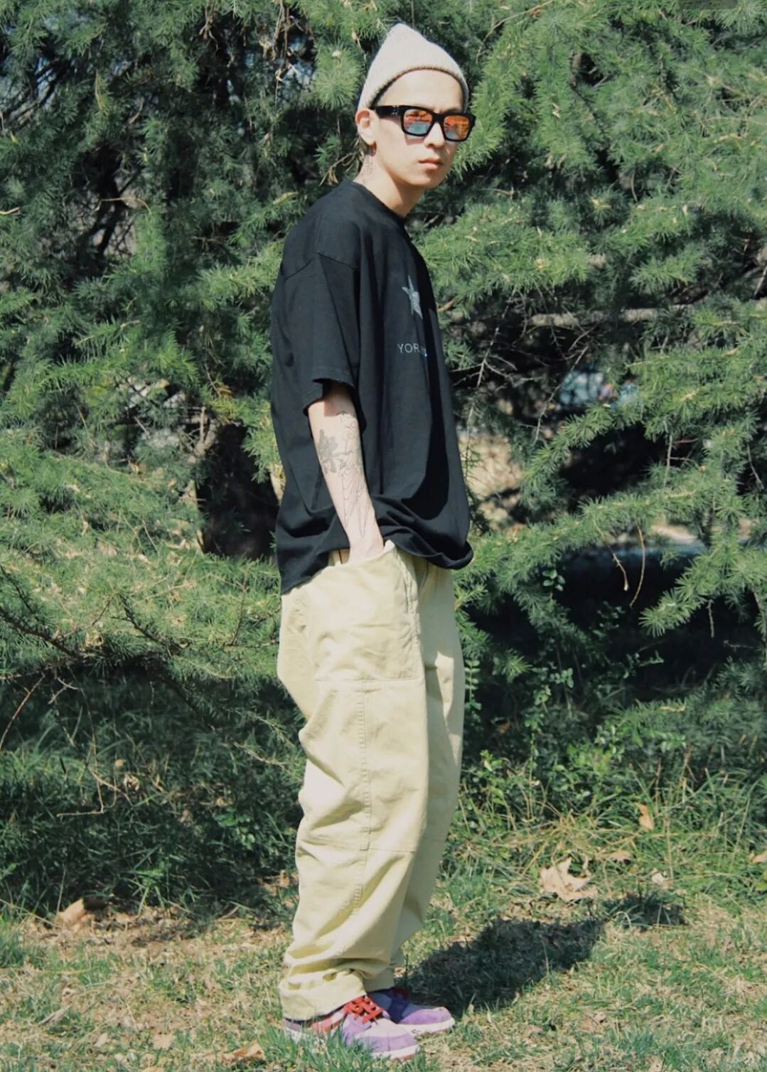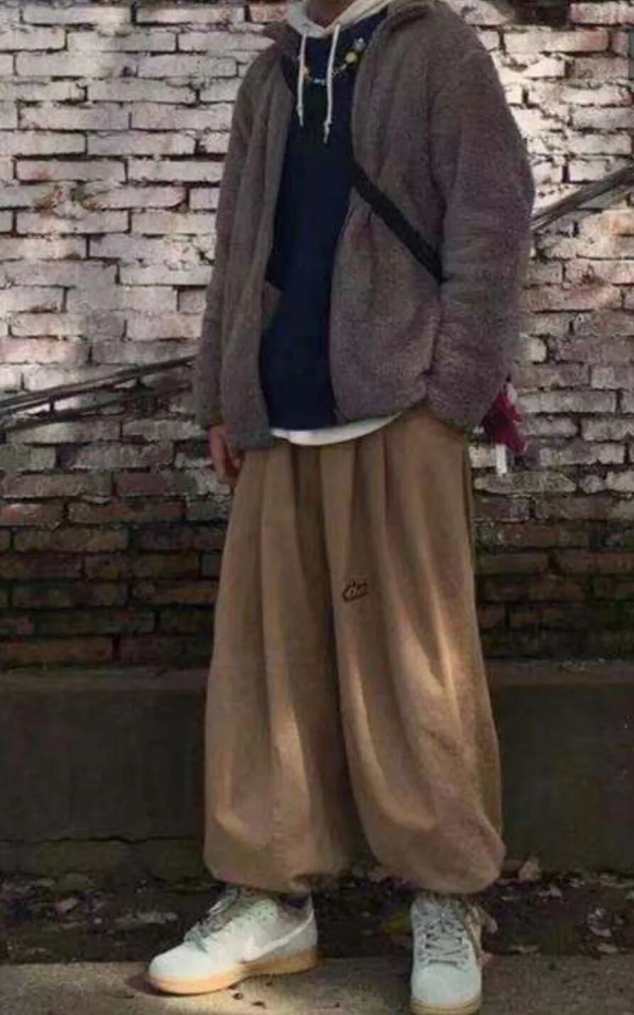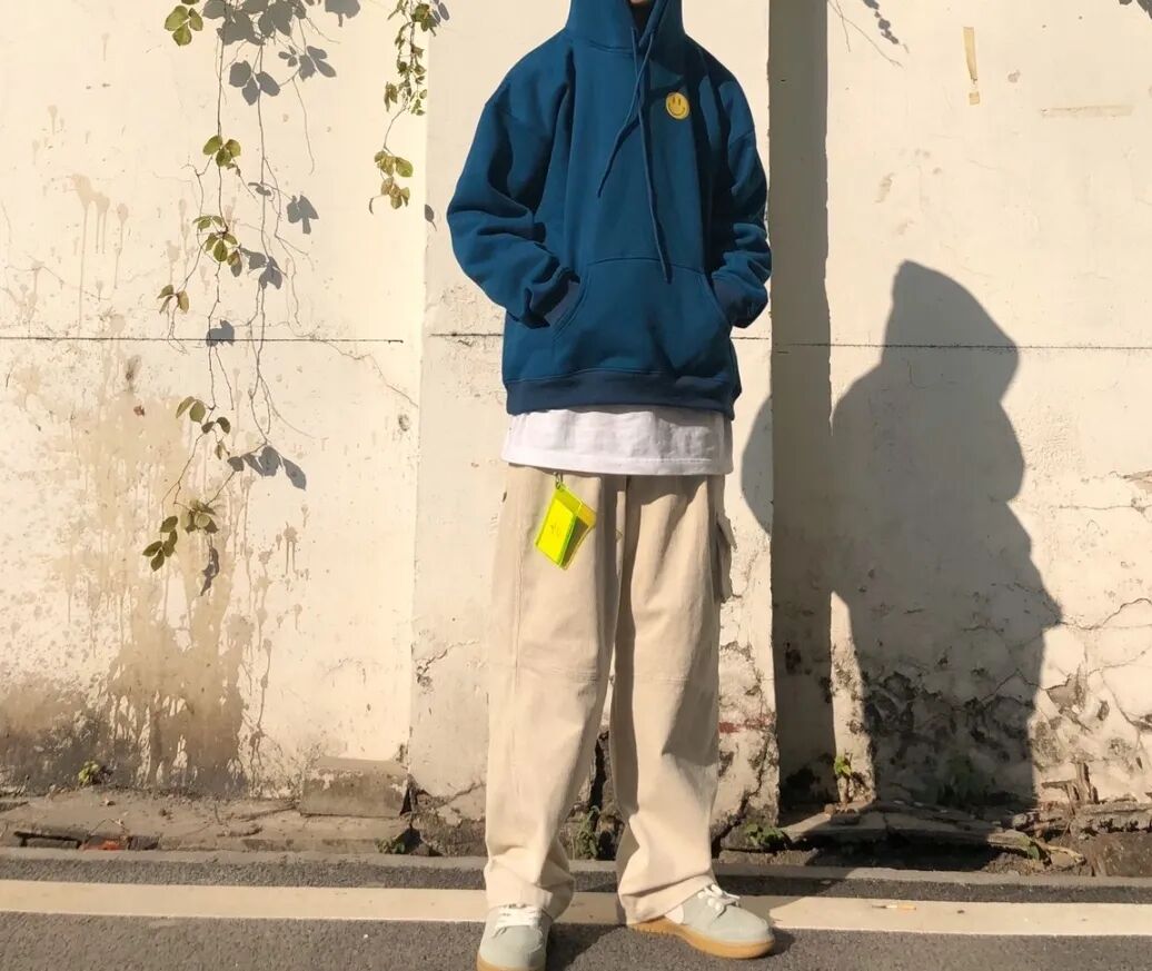 相信大家从图中也能看出来,近色系穿搭要点好像只需要你下单一条卡其色工装裤。这种裤子搭配球鞋的好处真的不用我多说,上身你就明白了。