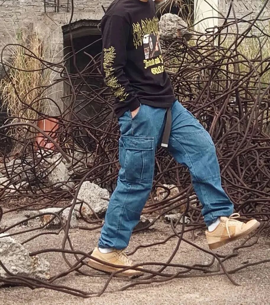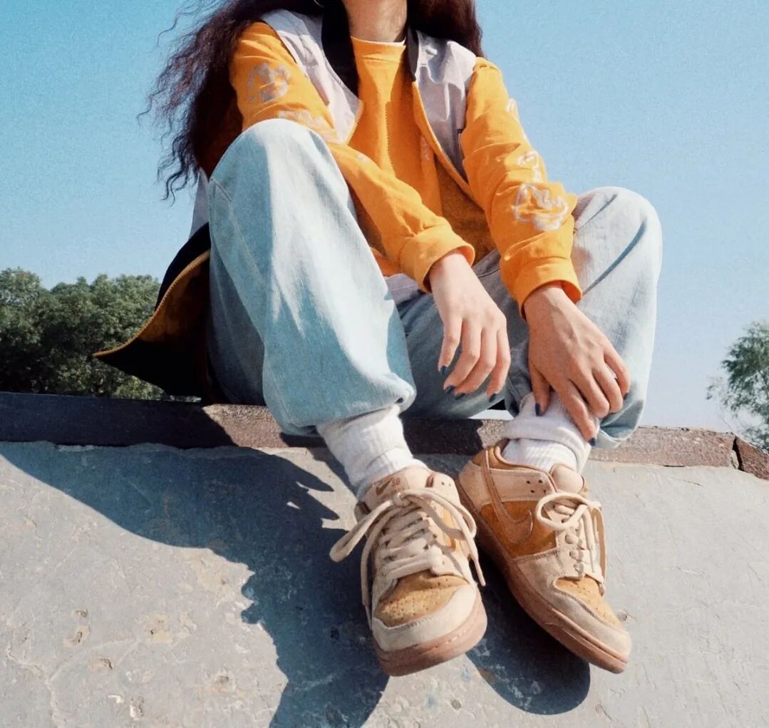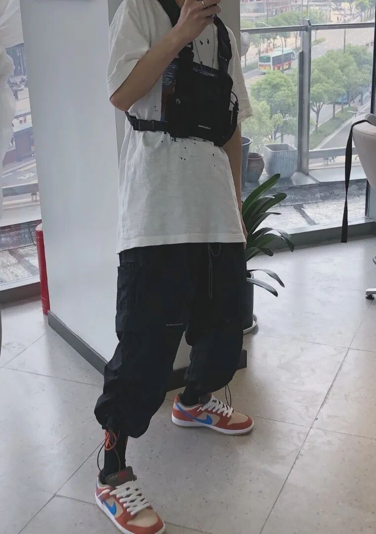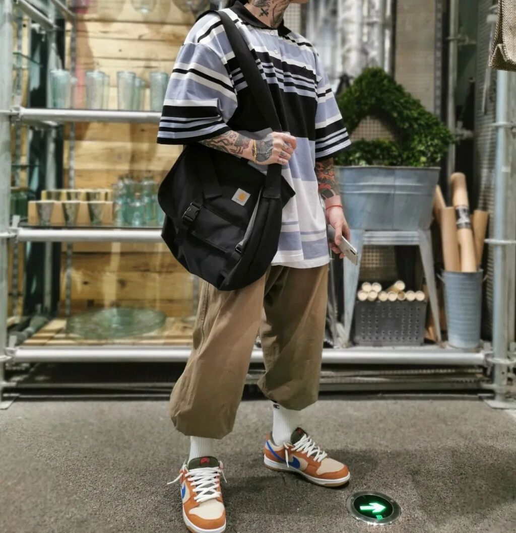 Dunk作为一双滑板鞋,美式、街头、复古、运动等关键词和其密不可分。所以无论是这双小麦还是橘色dunk,和上衣同色呼应的同时,还是注意要有一条宽松肥大的裤子。迷彩还是浅色牛仔就看的风格啦。