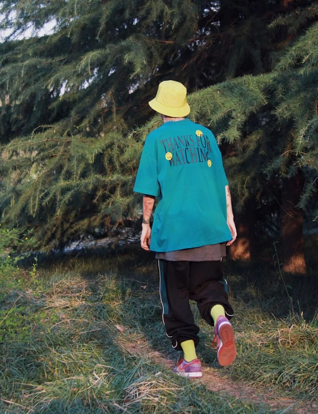调色搭配相对难一些,绝对不是简单的随便搭配,而是在复杂多样的颜色中找到舒适的搭配效果,同时又有一些细节上的单品相呼应,像包包,棒球帽以及袜子手链等等。这种搭配方法比较适合有自己独特审美的朋友,个性张扬通常是他们的标签。