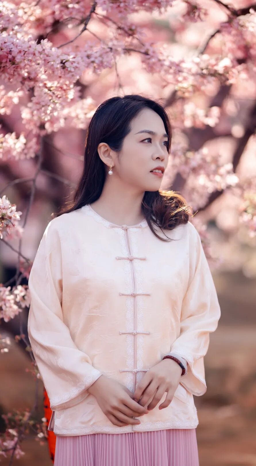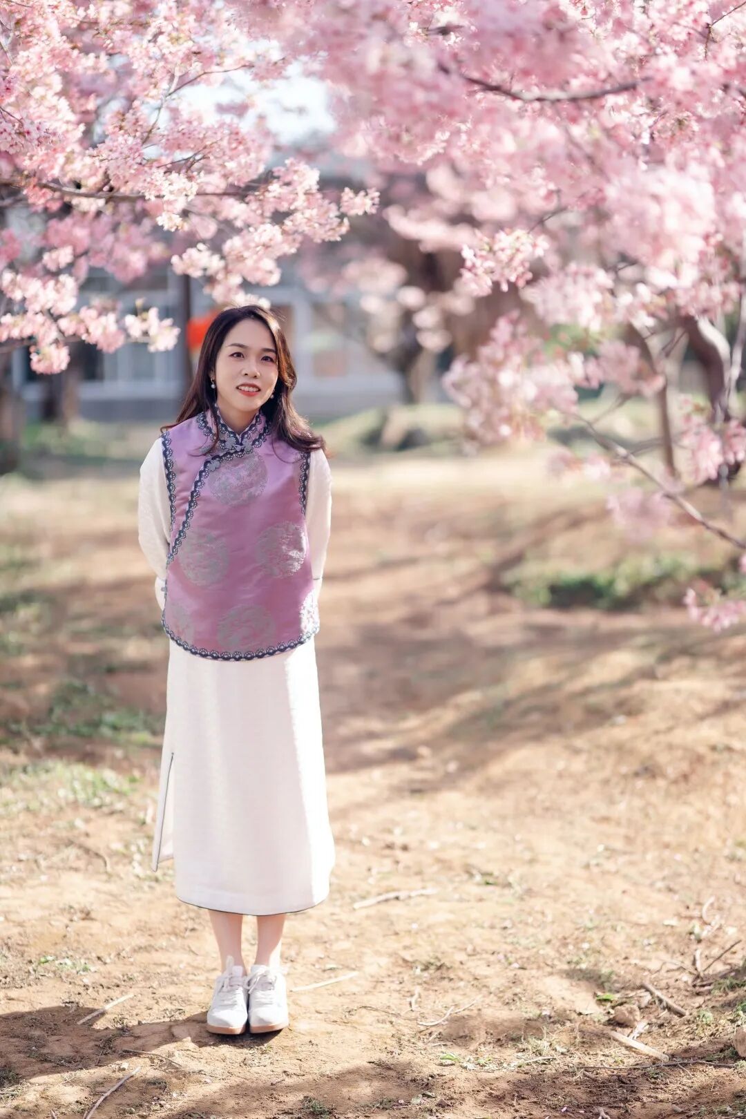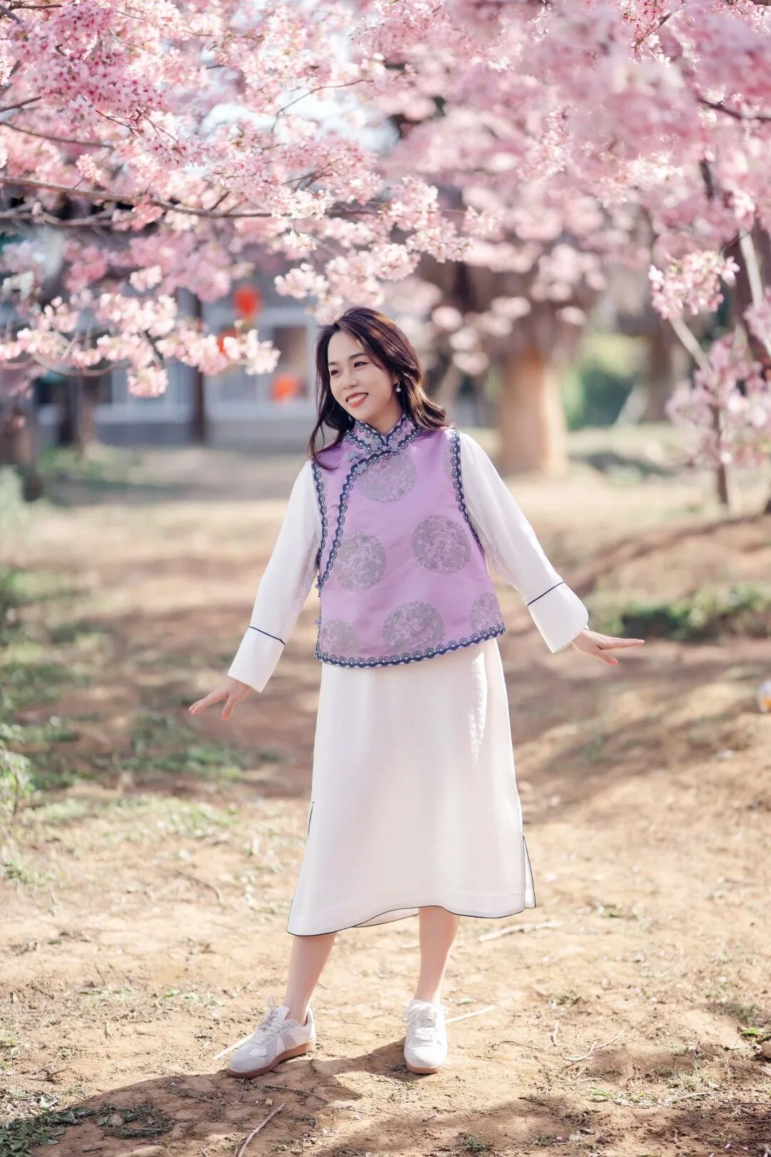 樱花的温柔配上民国中式上衣或小马褂,舒适之外,或知性或活泼,你想要的任何感觉都可以轻松驾驭~