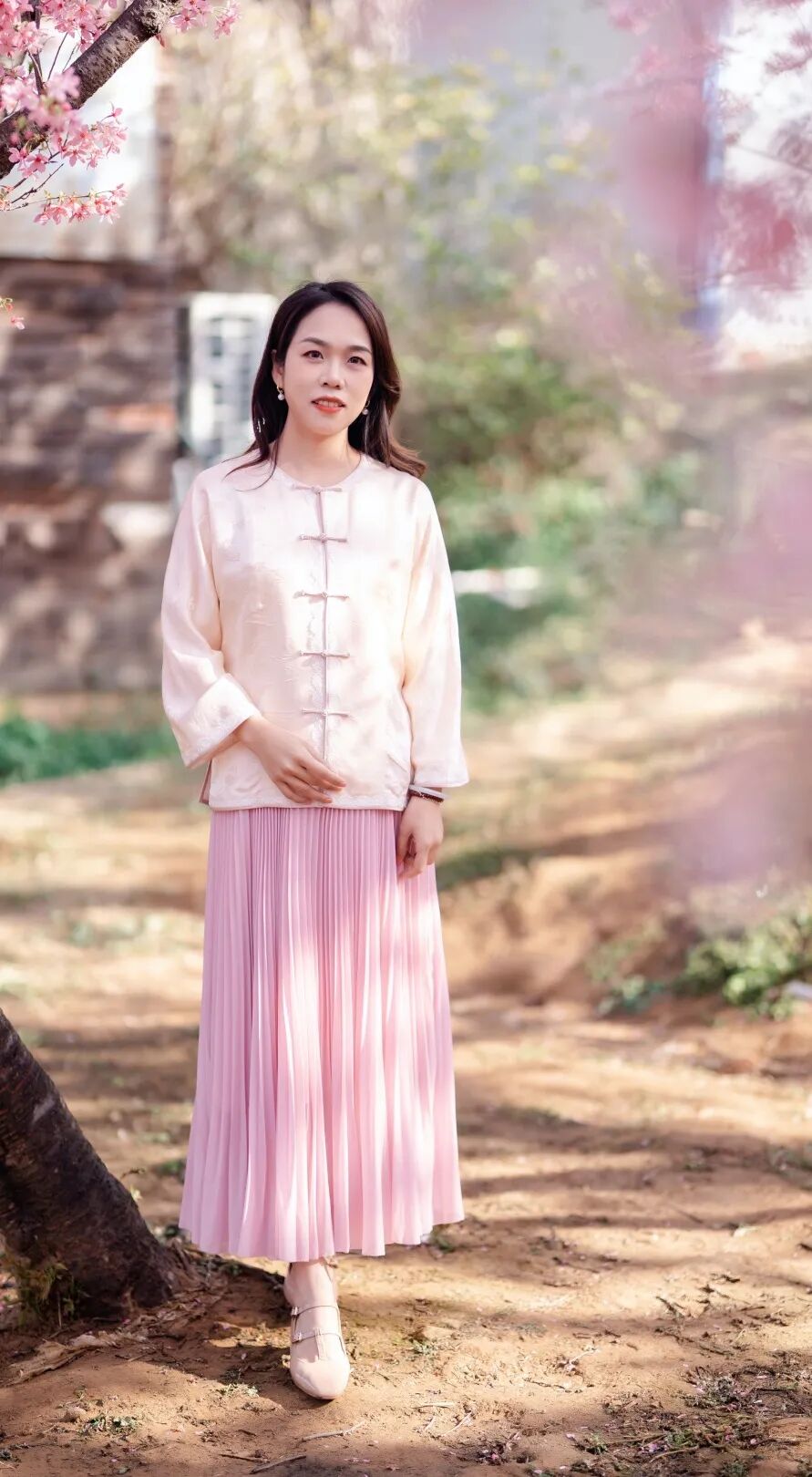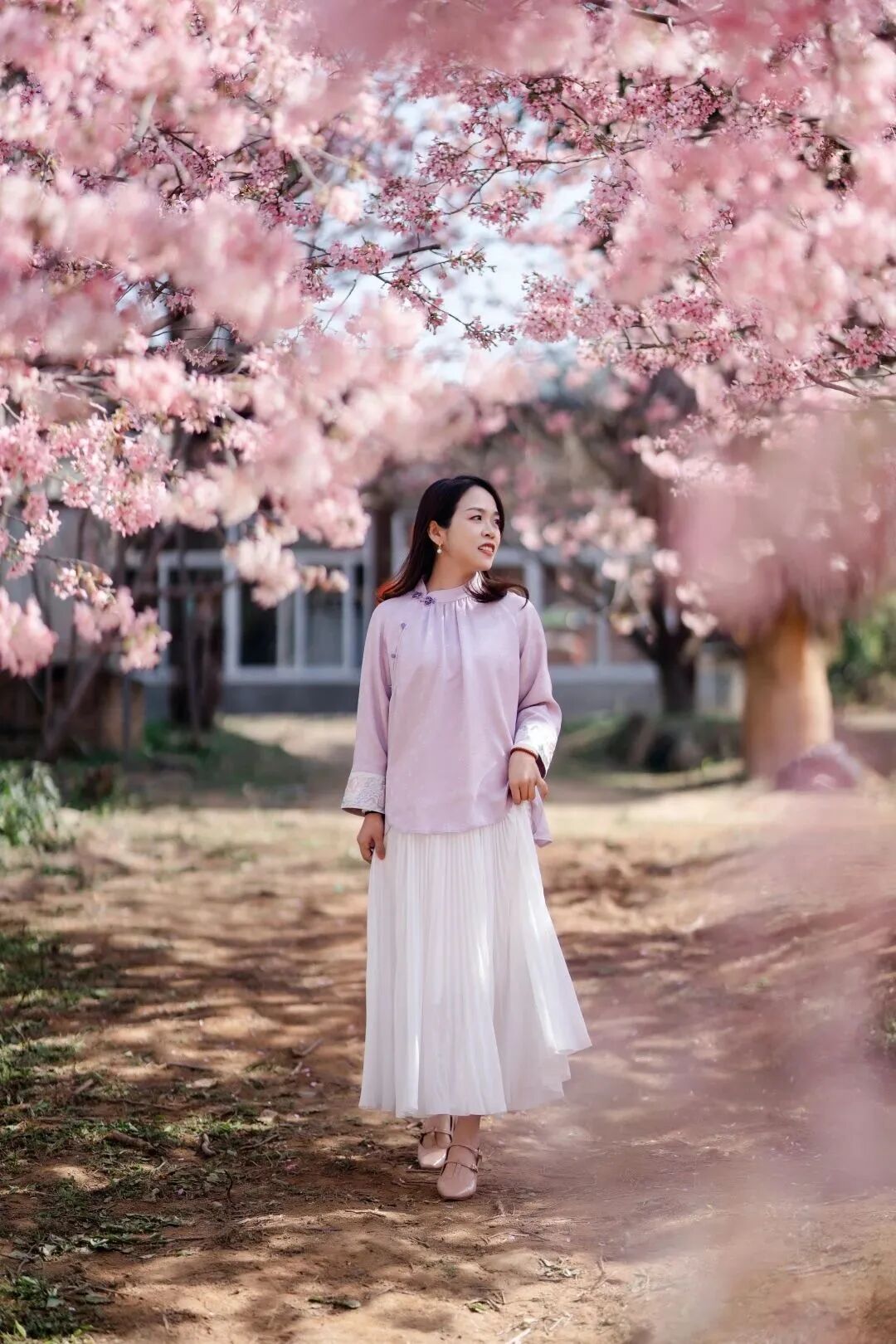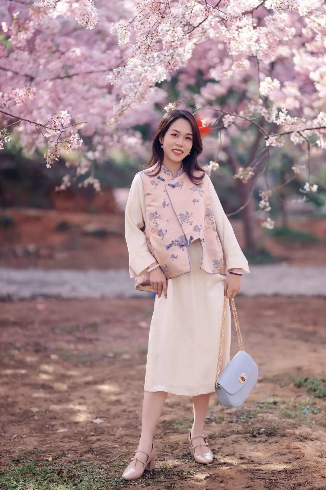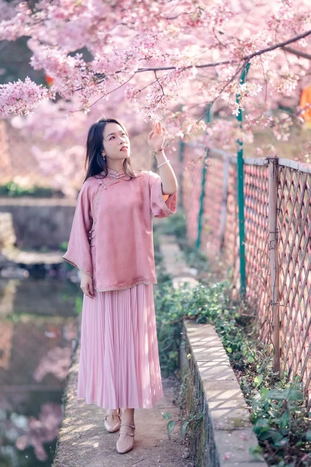 樱花的温柔配上民国中式上衣或小马褂,舒适之外,或知性或活泼,你想要的任何感觉都可以轻松驾驭~