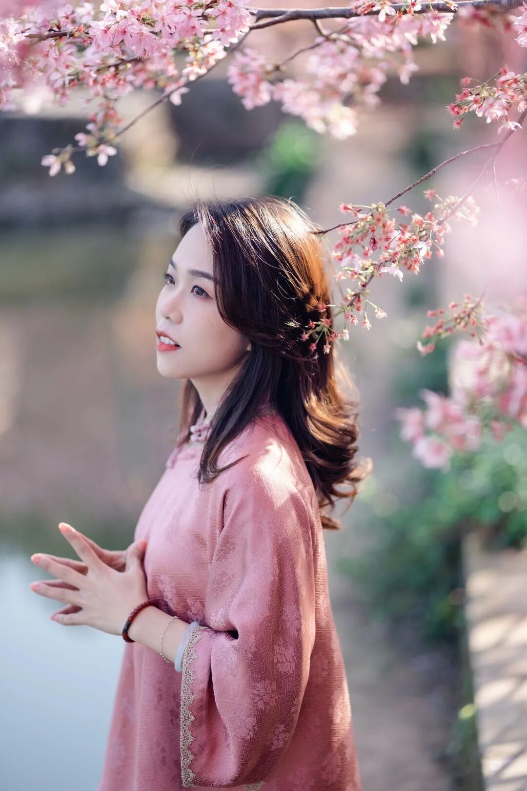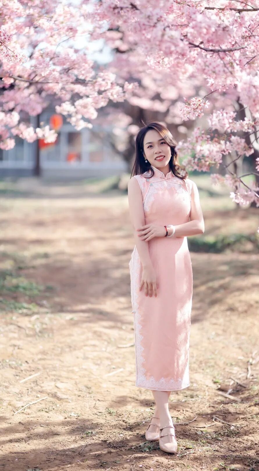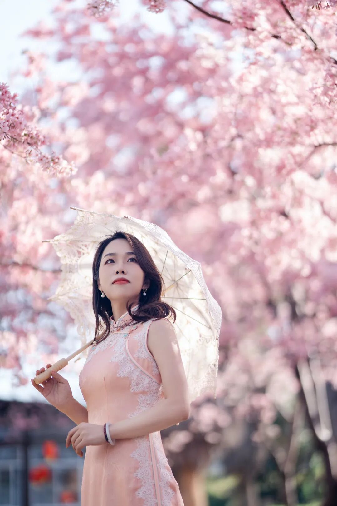 当“东方美人”遇到优雅的粉色系东方旗袍,妥妥拿捏婉约、温柔的氛围感。清淡的粉色也是樱花季的最佳配色哦~