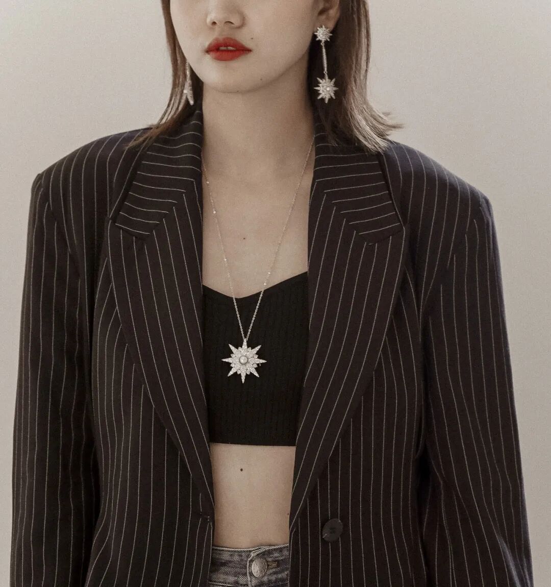 套上一件黑西装外套,妥妥的御姐范,又酷又美。