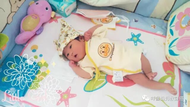 这就是咩酱出生后,我给她准备的第一类衣服「蝴蝶衣」,也有叫和尚服的。因为款式宽松,因此对于新生儿脐带未脱落时,是非常友好的,它可以使摩擦减到最低。