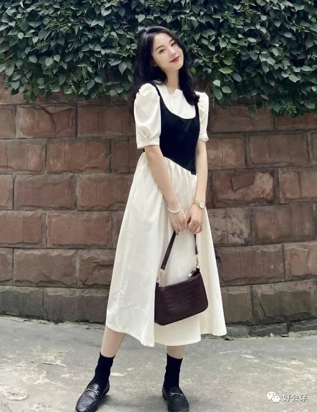 在浪漫的夏日里,怎么可能少得了一件轻盈凉爽的连衣裙呢?选择一件法式复古的连衣裙,轻轻松松就能够穿出优雅的气质美哦!像这种泡泡袖的设计,真的很适合肩膀比较宽的妹子哦,而且这种袖子的长度刚刚好,很提气质。裙子的长度也是恰到好处地遮肉了小腿粗的地方,黑色的部分的拼接设计,真的超级显瘦呢!