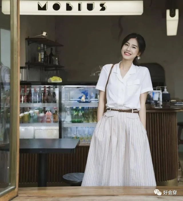 选择一件复古优雅又充满文艺气息的半身裙,就能够轻松演绎浪漫的法式风情。一件条纹半身裙,经典的元素演绎出的时尚感,永远不会过时和俗气,搭配着一件简洁时尚又大气的衬衫,丝毫没有任何的乏味感,相反,这样的一身法式穿搭尽显女性的优雅知性和端庄。