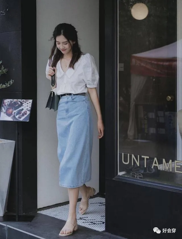 充满法式浪漫的一件白色小衫,镂空的翻领设计,蕾丝边的融入也增添了一丝的精致高级,而且还很好地修饰了颈部线条,露出迷人锁骨,气质又显瘦。衣襟是纽扣设计的穿脱也十分的方便,泡泡袖的设计给人一种甜美可爱的俏皮感,少女感十足哦!这样的一件白色小衫搭配着一件蓝色的牛仔裙,宽松的版型对梨形身材的女生很友好哦,裙尾开叉的设计,显得更加有女人味。而且这种蓝白相间的配色,清新脱俗又简约时尚,真的无处不流露出法式的浪漫风情哦!