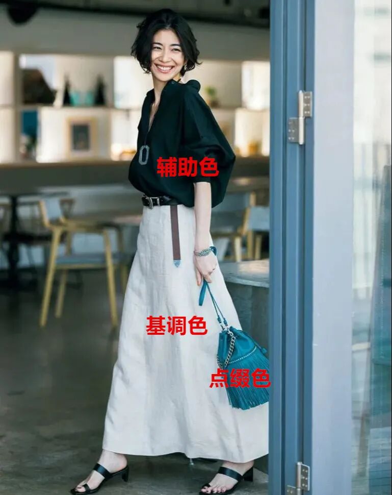 搭配任何一套衣服时,请先明确它的基调色、辅助色、点缀色。很多人说一身衣服不超过3种颜色,但都不明白原因和正确用法,接下来请认真看。