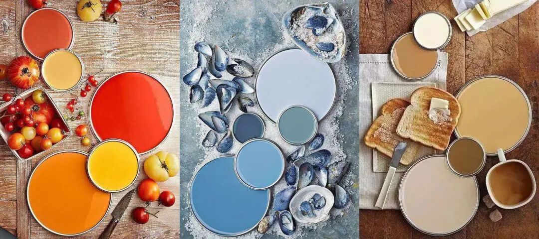 灰蓝+米黄+红色:鲜艳的红色和米黄可以互为辅助或点缀。