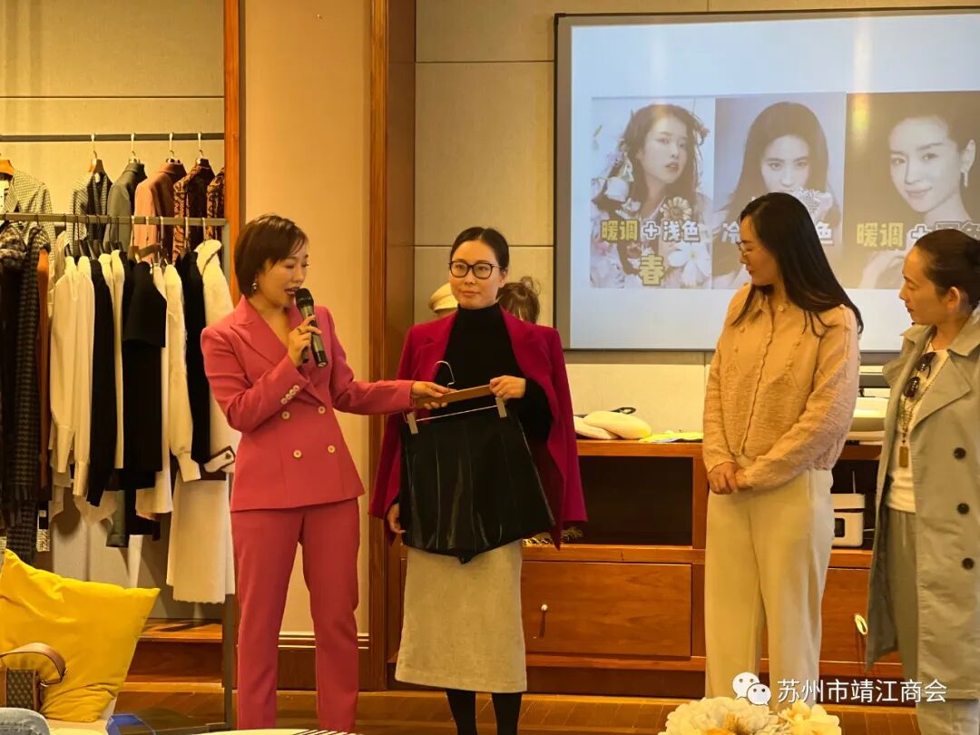此次商会活动分为以下几个环节。1、 找对色彩就美丽(并不是所有颜色都适合你,通过此次分享让大家了解到色彩与人的关系);2、 风格主宰形象(每个人都有自己与生俱来的风格,只有服装风格与自身风格想对应,才能产生和谐的着装效果);3、 身材种类(认识自己的身材类型,才能通过穿衣扬长避短,获得完美比例);4、 魅力蝶变(选几名女企业家们现场做全面打造,让大家感受到服装对一个人的影响);当然,男性穿搭也同样重要,不是那么擅长穿搭的男性朋友们赶紧学起来吧!