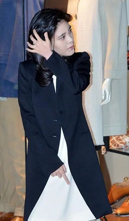李富真的大衣+裙组合看似简单,但是却并不缺乏该有的设计感,就比如外部的这件大衣颜色够低调,样式够简单,但是衣摆中部却有一大片空洞区域存在,不仅能够充分暴露出内部的白裙,还能够进一步增添适当的潮流风味,不至于显得那么死板单调。