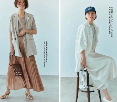 在夏季首推色彩偏浅淡的卡其色,根据色块的划分不同,卡其色可以分为跨越程度很大的一系列色彩。中年女人比较适合的是色调偏浅的卡其色,对于肤色显白显亮的效果更好。