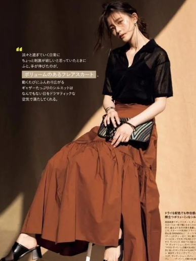中年女性的生活节奏缓慢而有质感,相匹配的穿衣背景也是以简约质朴为主要特色的。色彩是展现穿衣品味的很大一部分占比,自然要以纯色系为主,尽可能展现出色彩的醇厚感和高级感。