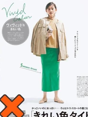 草绿色是一种绿色调非常浓烈的色彩,所以也就决定了它与其它色系的不易融合特性。草绿色在光线强烈的时候还略带一些荧光的即视感,会反衬黄皮肤的女人肤色更黑。