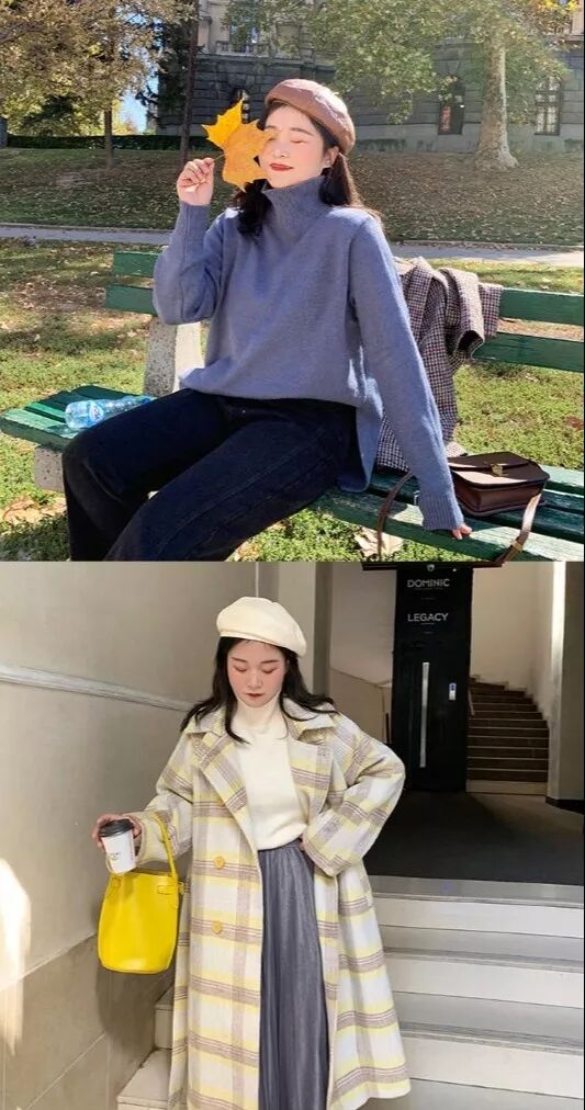 姐妹们可以加一个小高领打底,