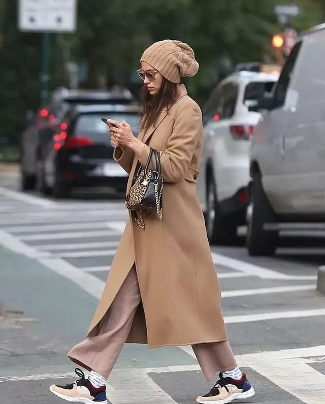 需要注意的是,我们在选择用老爹鞋搭配大衣时一定要注意下装的选择。如果是身高比较矮的女性,在大衣比较宽松的时候,想要搭配老爹鞋也不显得臃肿,可以选择长款的阔腿裤进行穿搭。