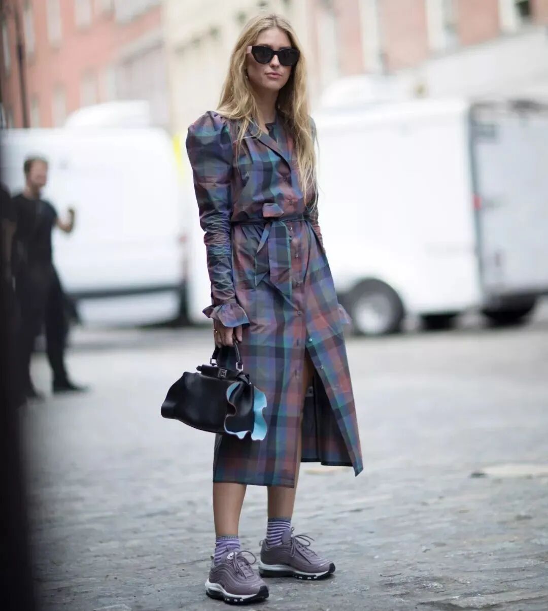 因此穿搭时,我们可以放心大胆地选择通过老爹鞋来搭配一些同样款式新颖的风衣,能够在保持风格的和谐统一的基础上为穿搭增添更多的个性和细节。