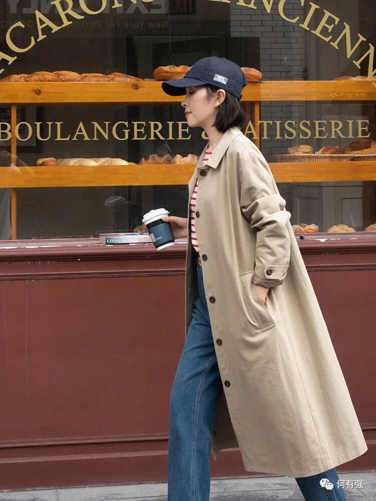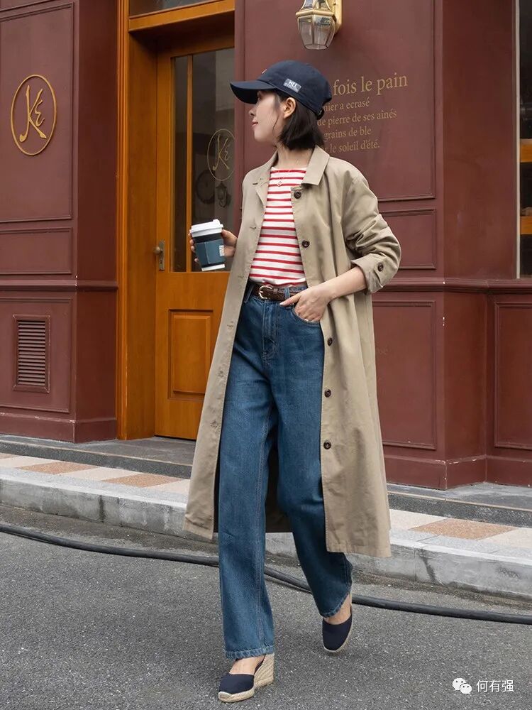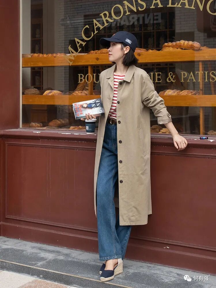 我们平常都用风衣搭什么呢?风衣的款式算不上多,最常见的款式一类是与大衣相似,另一类是像这件风衣一样,但要具体一点是很难有一定的界限的。