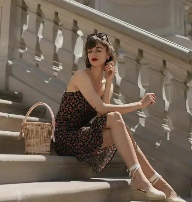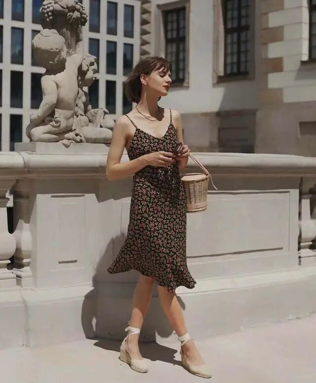 就问你喜欢这样的法式范吗?一件白色清凉吊带配简单黑色半身裙,配上经典的法风草编坡跟单鞋,缠绕的系带不经意流露小女子心底的细腻与温柔,简约舒适的时髦真的好喜欢。