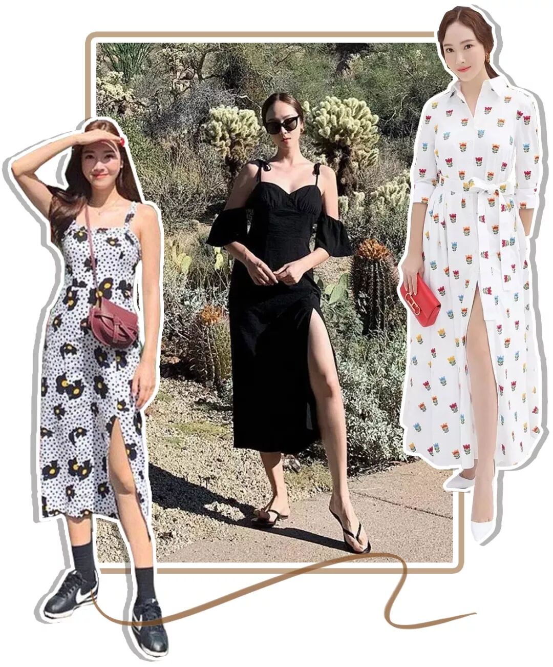 时,就可以像Jessica这样将身体重心微微向后倒,露出裙摆开衩那一侧的腿,161cm也能拍出一米八大长腿既视感。