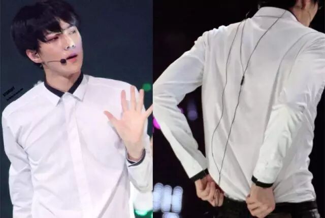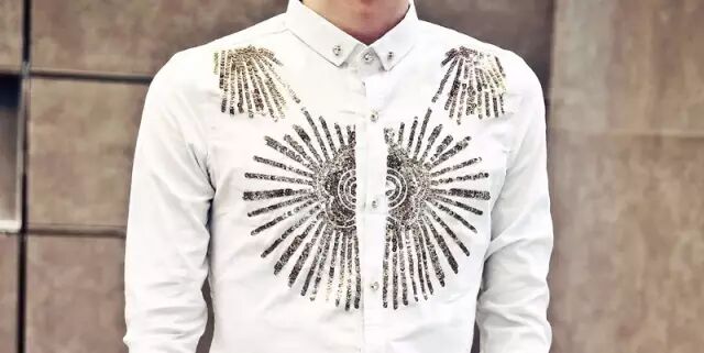 另外,白衬衫几乎可以承载任何小修饰和小花样,比如小图案、徽章、袖标、袖扣等,灿烈这件黑边白衬衫就显得青春而有趣。