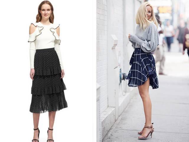 搭配带有蓬松下摆的裙装显然才是I型身材女生的正确打开方式——宽松的下摆可以弥补过于扁平干瘪的身材,从而让你的身材看起来更具线条感、更显娇俏玲珑范。