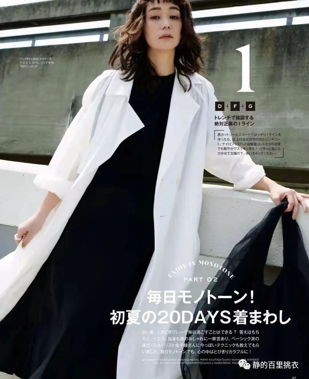 白色是一种有清爽魅力的色彩,在穿搭之中,可以看到白所代表的意境,包容性更强,有一种不争不抢的感觉。白色的外套搭配黑色的裙子,有一种温柔和傲骨,又让人清爽自在,表现力非常的强。