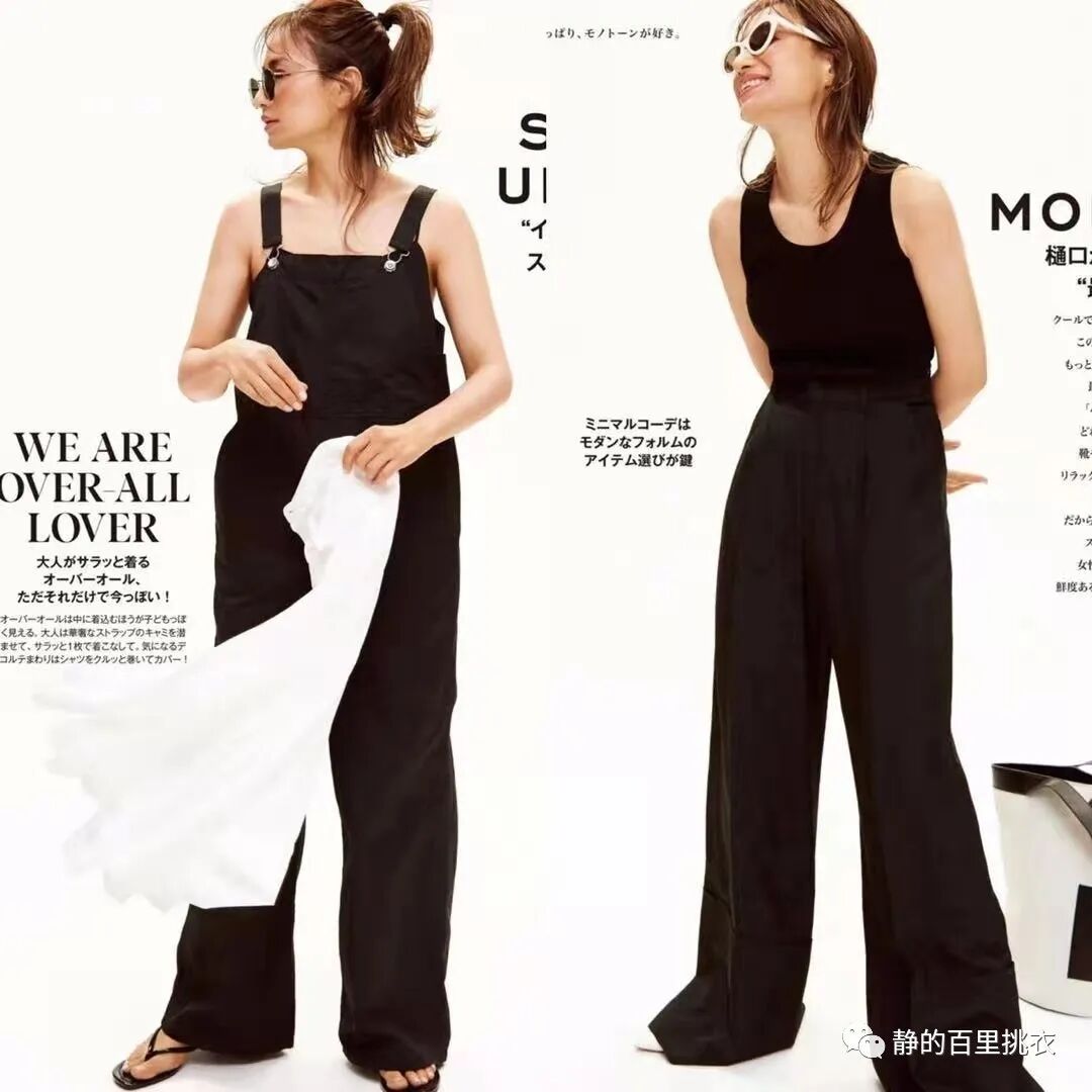 利用黑色的背心搭配阔腿裤,展现了女性的气质与性感,这种拖地款式的裤子,对于身高会有一定的要求,越高的人穿上去越有气场。