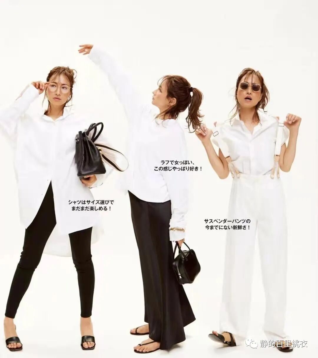 在整体的造型之中,白色为主色调的时候,所占的面积是更大的,将属于黑色和白色,简洁的本质全部展现出来了。衬衫更加的有轮廓感,搭配紧身裤,用上松下紧的搭配方式来呈现出一种高级感。