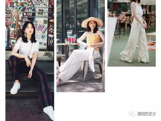 除了上装,下装的选择也有很多讲究。像是最近比较流行的高腰喇叭裤就还蛮适合哈比族的,可以尽情往里头藏高跟鞋,保证没人能发现,而且宽宽的下摆特别修饰肌肉小腿。高腰阔腿裤就更不用多说,梨形妹子必备,显高显瘦~