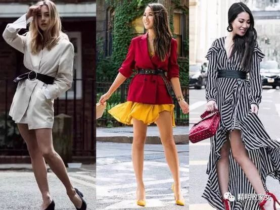 或者干脆简单粗暴的扎上一个腰带,不仅能增加时髦感,还能打造出「胸以下全是腿」的既视感,是不是棒呆~