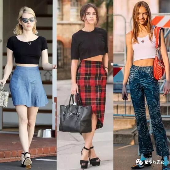 首先当然是火爆时尚圈的croptop啦,如果你有什么马甲线、A4腰,更是不要吝啬赶紧大胆秀出来。来自哥本哈根的博主Sarah mikaela(左1、2)就深谙此理,穿上超高腰的croptop,你看的出她只有一米五几吗?如果初秋有点微凉,还可以像最右一样,把背心短袖换成露腰薄针织,再搭配高腰伞裙,不仅梨形身材藏起来,而且腿长到犯规!