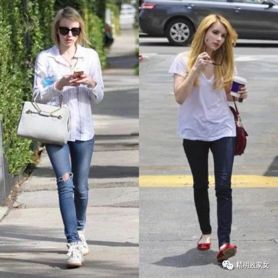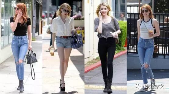 当然如果你还没有自信露出小蛮腰,或是养生少女怕着凉也没有关系,还可用塞衣大法啊!身高157cm的艾玛·罗伯茨就【逢衣必塞】,满屏大长腿,哪里看得出她不到160?除了本身身材比例好之外,把衣服塞进裤子打造高腰线也是帮了大忙。