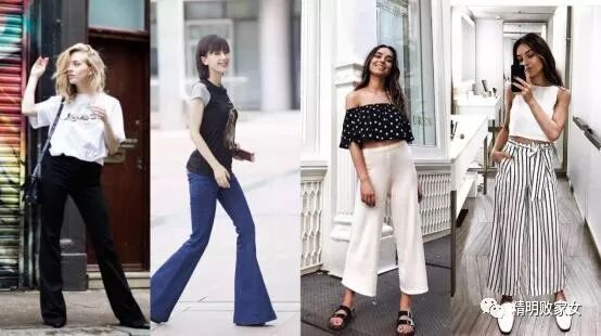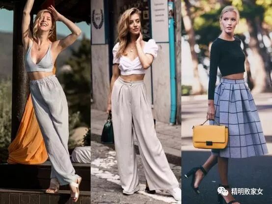 短上衣、croptop、高腰阔腿裤、高腰喇叭裤