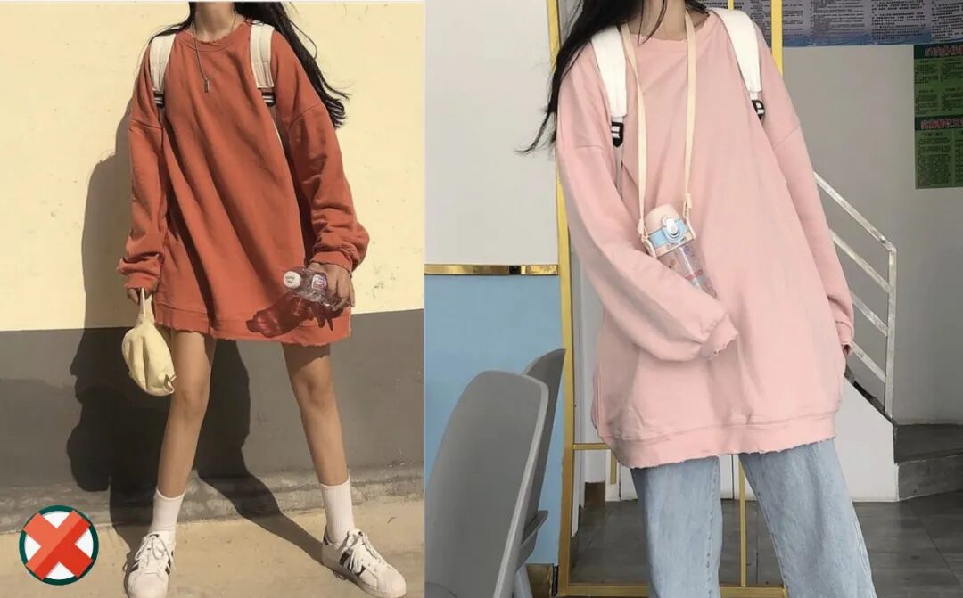 并且宽松卫衣,也不能搭配宽松牛仔裤,身材瘦小的仙女穿搭在身毫无精气神。