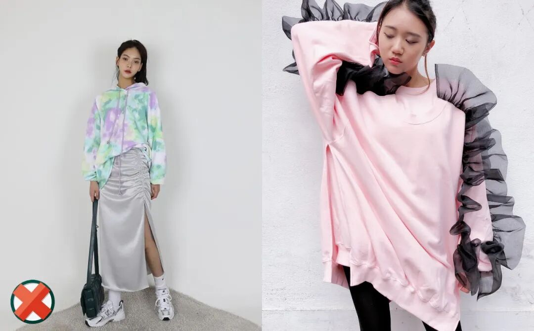 其实卫衣能搭配的半裙款式还是蛮多的,但是如果不想被认为有故作可爱的嫌疑,裙子的风格应当避免太幼稚少女。