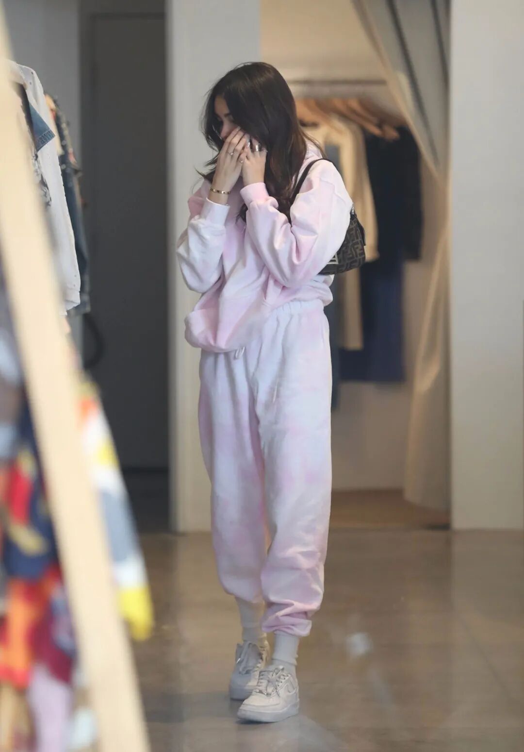 选择偏软手感的卫衣和垂顺度较好的阔腿裤搭配,直筒裤不挑身材最适合。