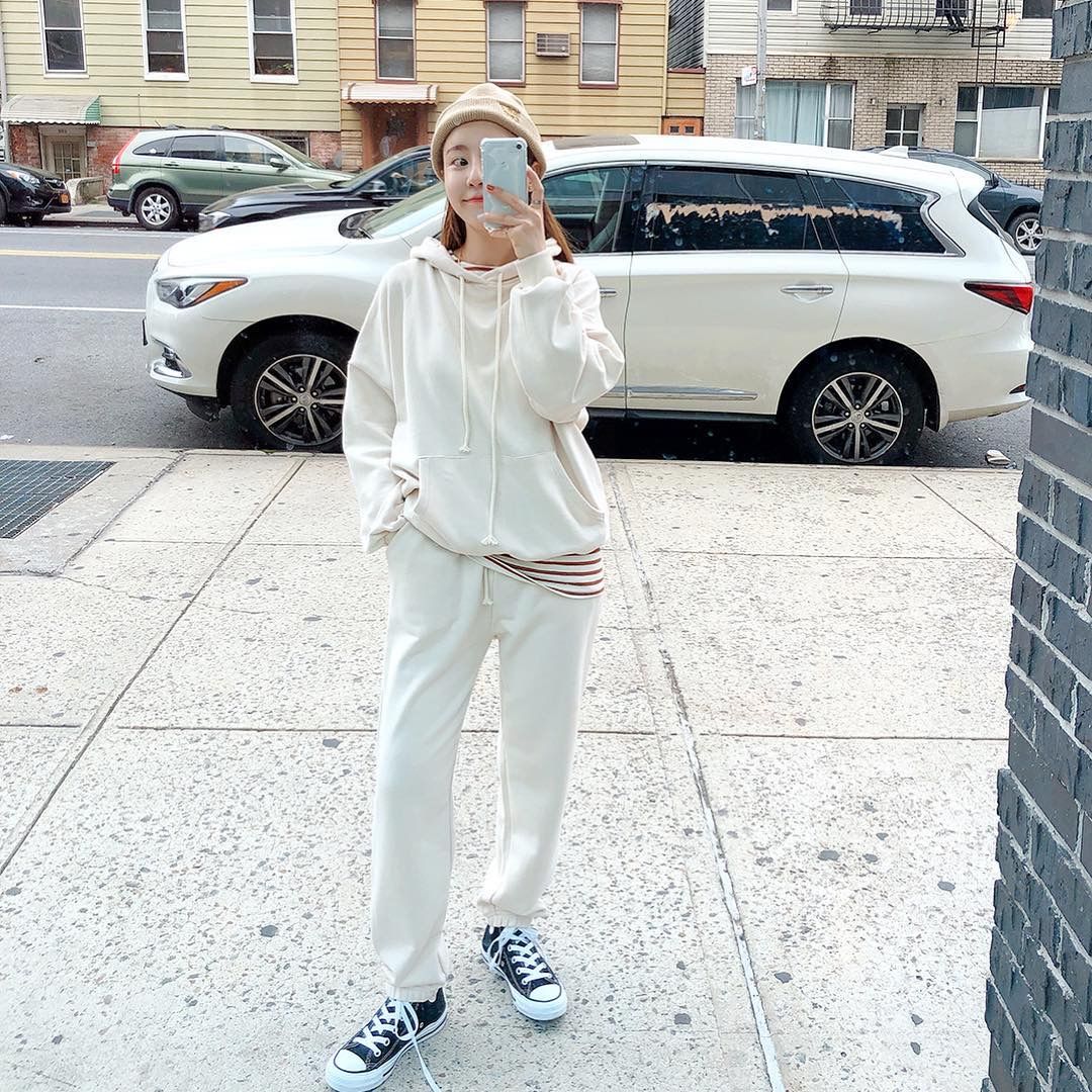 身材比例好的妹子,嫌搭配费劲的话,大可直接入手卫衣裙,短款俏皮但考验身材,长款套装的适用范围更广些。