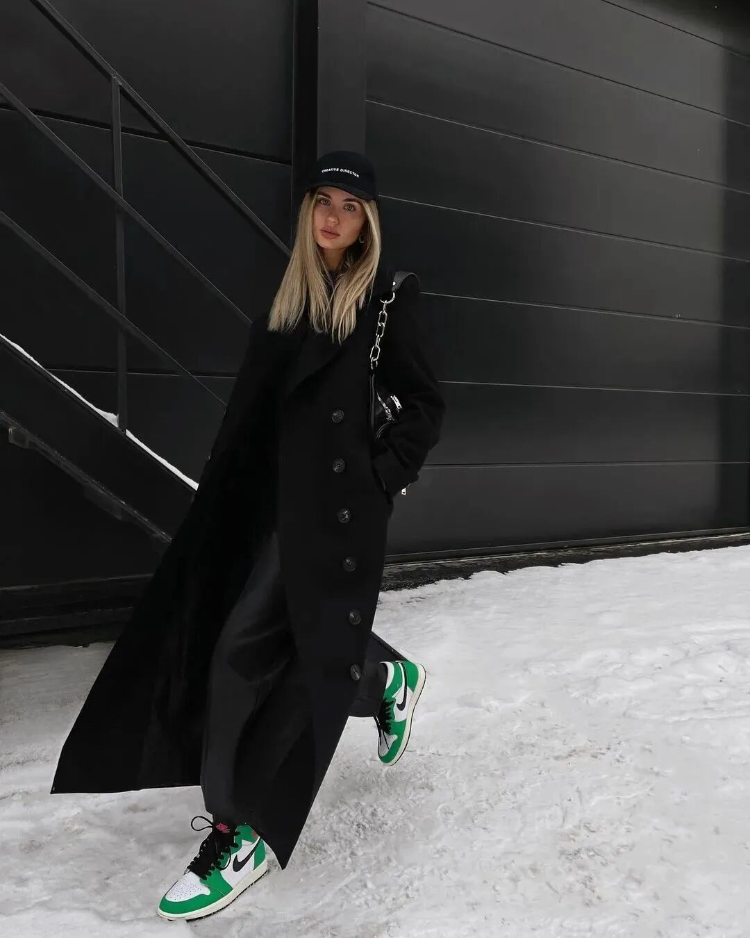 黑色大衣的经典与时尚也是它受追捧的重要原因。不管流行潮流如何变幻,黑色大衣始终都是永恒的时尚代表。