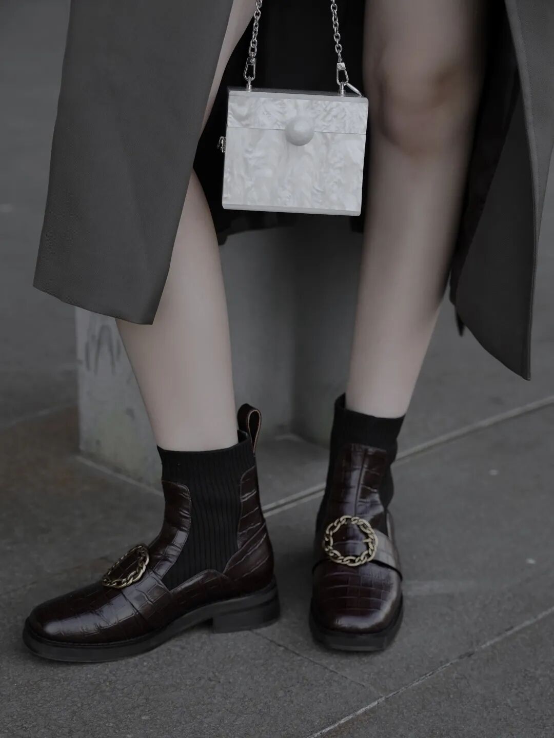 烟筒靴秋冬搭配利用率超高,小腿微粗的女生也可以大胆入手,能很好的遮住腿部线条!黑白拼接让我的温柔大衣多了一份率性洒脱,沉闷的秋冬为单调的基础款大衣增添性格和亮点。