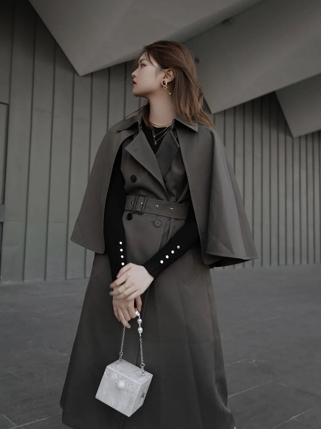 而且呢,亚洲女生的肤色偏黄调的比较多,为了不让风衣的颜色太靠近肤色而显得没精神,黄调偏多的卡其色还是尽量避开。