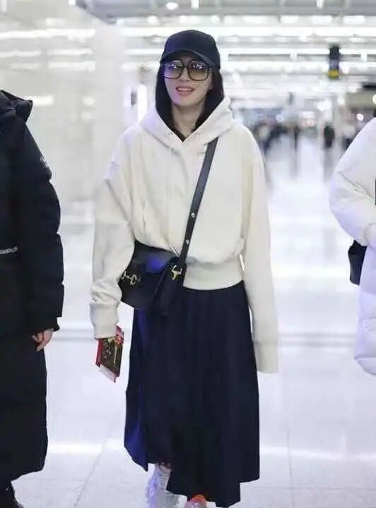 卫衣在春天的出镜频率是非常高的,裙装同样也是如此,尤其是半身裙又减龄又能够彰显出精致感,可以选择纯色系的圆领卫衣,雾霾蓝色代表着温柔和精致。
