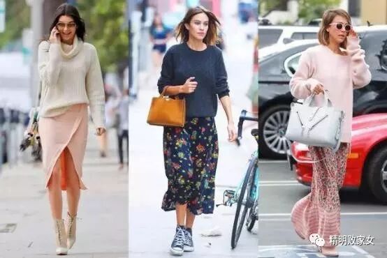 觉得裤子太man,想要更有女人味一些的话,可以选择毛衣+裙子,这个套路一辈子都能用!