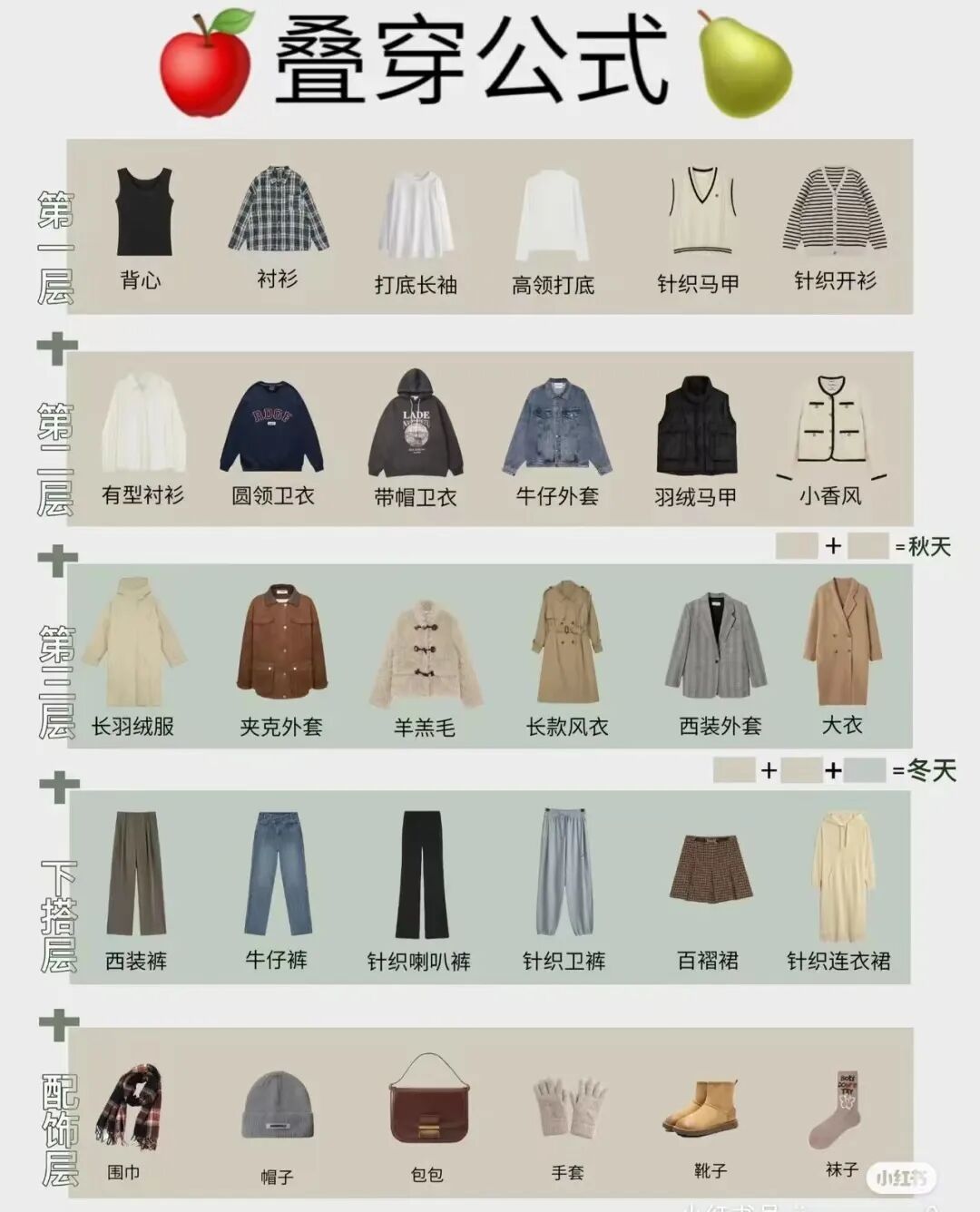 在这里给大家整理了最最基础的叠穿公式、也是每个女孩子衣柜中都人手必备的单品。大家可以根据自己衣柜里的衣服进行有效的叠穿搭配哦。