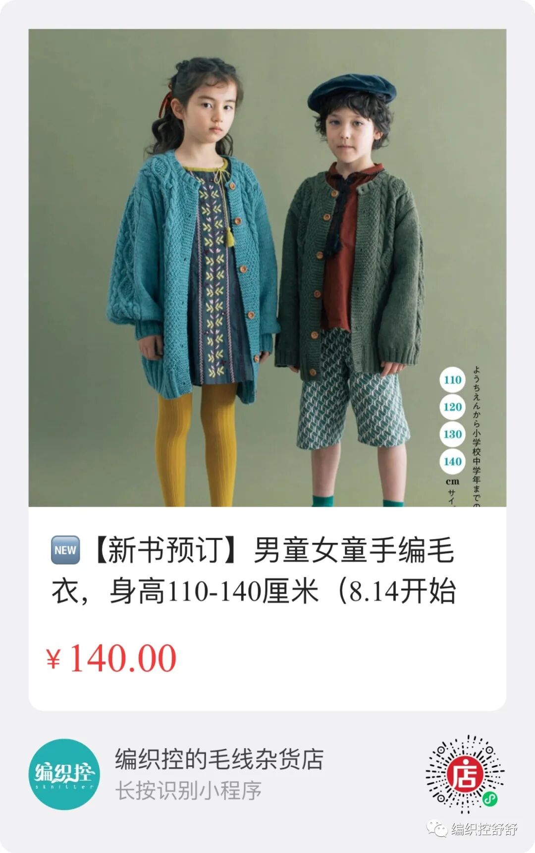 新书预订:男童女童手编毛衣,适合身高110-140厘米的青少年