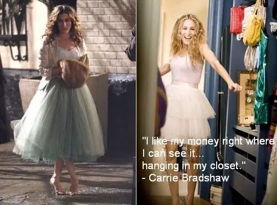 最经典的时装剧《欲望都市》中Carrie也没少穿蓬蓬裙