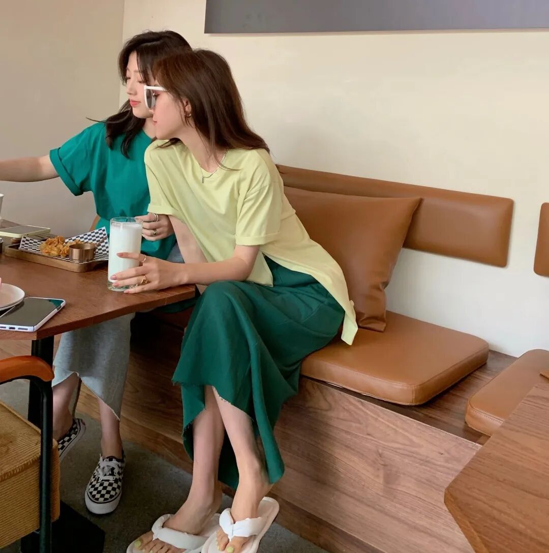 /不规则T:简约的T恤也可以不那么普通 尝试下这款简约高设计感的T吧一眼看是小众ins风内味斜U领和三角边下摆剪裁设计松紧腰半身裙