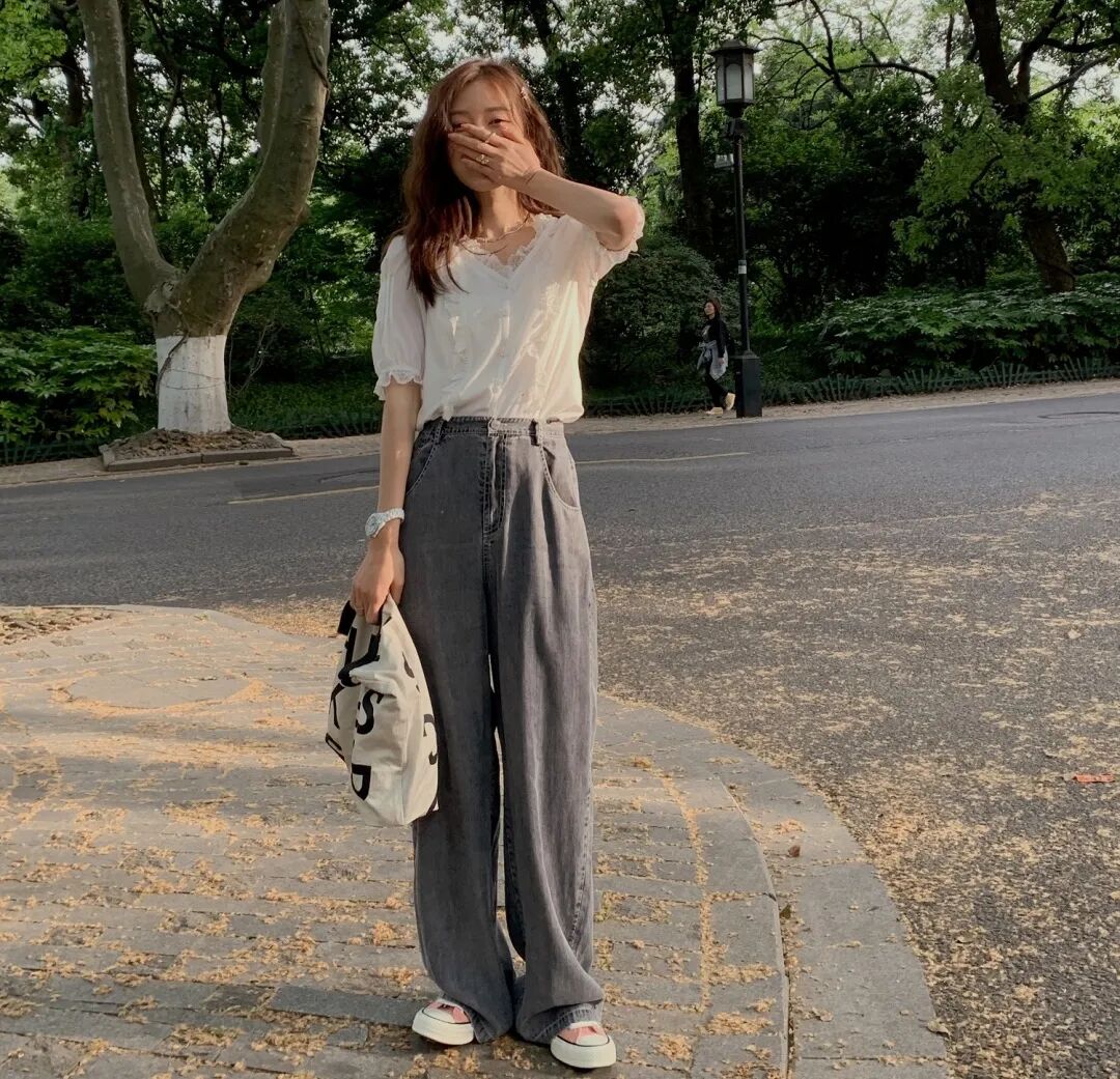 <<>>灰色牛仔款:1oo%天丝面料 冰冰凉凉夏日SHOU选就很轻软且垂感敲牛 Q弹的空气感白色牛仔款:上身和其它阔腿裤立见高下的一款高腰阔腿裤后面是松紧弹力的 前面是不规则纽扣