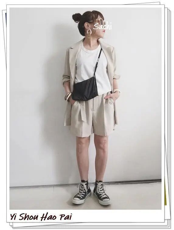 虽然长裙等下装很流行,但在2020年夏季,使用短裤搭配女士的造型已变得很流行轻熟女性应在其T恤上穿连西装,以营造出类似男性的穿搭感,从而使造型不会显得幼稚最后,你可以使用黑色高帮匡威和迷你单肩包来收紧造型。