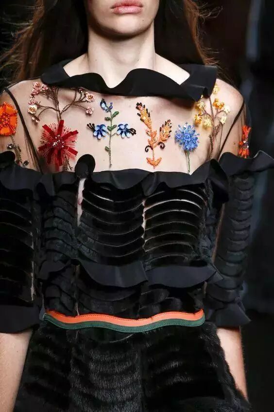 2.蕾丝遇上刺绣 蕾丝是每个女人都无法拒绝的,当蕾丝遇上印花,似乎更加让人无法抗拒。